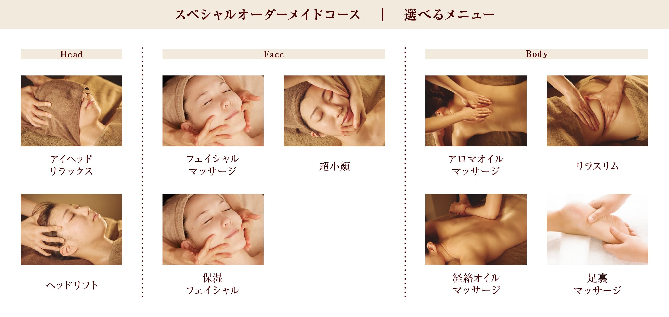 90分、120分、150分の選べるスペシャルオーダーメイドのコースをご用意しております。